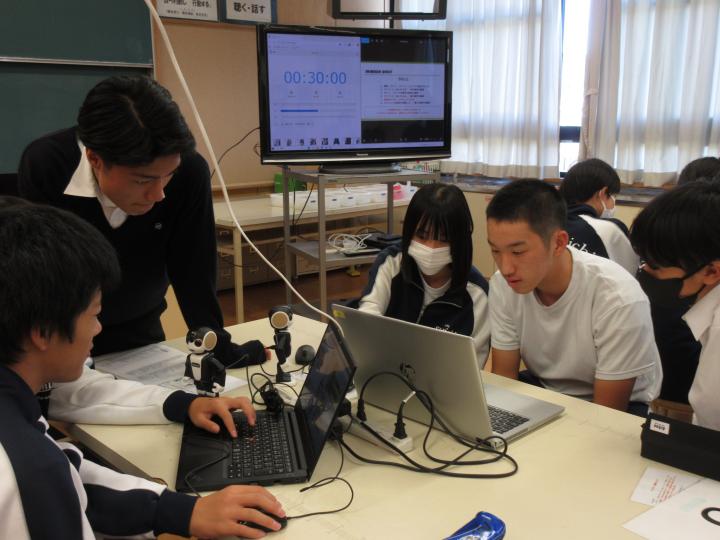 さらに、動きにも様々なアレンジを加えてくれていました。アレンジの中には「一回ロボホンを座らせてから再度立ち上がらせる」「ロボホンに数歩歩かせる」などがあり、発表が大いに盛り上がりました。動作確認をする際にも、「一度にすべての動きを確認できないか」と、効率面を考えて動作確認しようとする生徒がおり、脱帽でした。